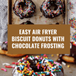 Keywords: Air fryer donuts, biscuit donuts, chocolate frosting donuts, easy donut recipe, air fryer dessert