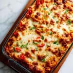 This hearty baked ziti features tender roasted vegetables layered with al dente pasta, rich marinara sauce, creamy cottage and mozzarella cheeses, and fresh basil. Roasting the cauliflower, bell peppers, and onions intensifies their natural sweetness and adds a delightful caramelized flavor, making this dish a comforting and flavorful vegetarian meal perfect for family dinners or gatherings.