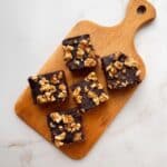 - Add toppings: Sprinkle the chopped pecans or walnuts and flaky sea salt on top if desired for extra crunch and flavor.