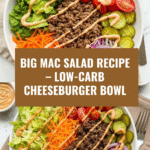This Big Mac Salad recipe perfectly captures the iconic flavors of the classic fast-food burger in a fresh, low-carb salad form. Featuring seasoned ground beef, crisp iceberg lettuce, shredded cheddar, and a tangy special sauce, this salad is a quick and satisfying meal that doesn’t sacrifice taste. Ideal for those craving the Big Mac experience without the bun, this dish is simple to prepare and great for meal prepping.