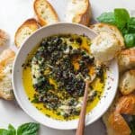 This flavorful bread dipping oil is a delightful blend of extra virgin olive oil, balsamic vinegar, fresh herbs, olives, garlic, oregano, sea salt, and freshly grated Parmesan cheese. Perfect for serving alongside warm, crusty bread, it offers a simple yet elegant appetizer or snack with vibrant Mediterranean flavors.