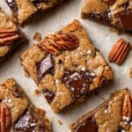 Keywords: brown butter blondies, bourbon blondies, pecan blondies, chocolate chunk blondies, baked dessert, nutty blondies