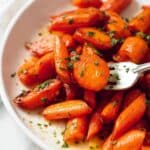 Keywords: brown sugar glazed carrots, roasted carrots, caramelized carrots, easy carrot recipe, side dish, vegetable side, oven roasted carrots, garlic butter carrots