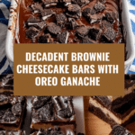 These Brownie Cheesecake Bars combine the rich, fudgy texture of brownies with a creamy cheesecake layer, topped with a smooth chocolate ganache and crunchy Oreo pieces for an indulgent dessert experience that’s perfect for any occasion.