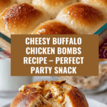 Buffalo Chicken Bombs are a deliciously cheesy and spicy appetizer featuring pulled buffalo chicken blended with a mix of creamy cheeses and hot sauce, all wrapped in flaky buttermilk biscuits and baked to golden perfection. Perfect for game day or parties, these bite-sized treats combine the tangy heat of buffalo sauce with creamy blue cheese flavors in a fun, easy-to-eat format.