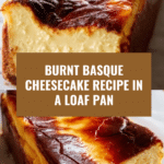 This Burnt Basque Cheesecake recipe is a rich, creamy dessert with a caramelized, deeply golden-brown top, baked in a loaf pan for a rustic twist on the classic Spanish-style cheesecake. Its smooth texture and slightly browned exterior offer a delightful contrast, making it a perfect treat for cheesecake lovers seeking something unique yet simple to make.