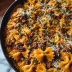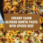 A rich and flavorful Cajun Cream Cheese Alfredo Bowties recipe featuring tender bowtie pasta tossed in a creamy, spicy Alfredo sauce with spiced ground beef. This comforting dish combines creamy textures with a bold Cajun kick, perfect for an easy weeknight dinner or casual gathering.