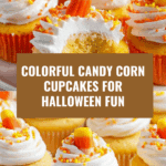 Candy Corn Cupcakes bring the festive colors and sweet flavors of candy corn into a delightful, bite-sized treat. These cupcakes are perfect for Halloween parties or any time you want a fun, colorful dessert with a fluffy marshmallow frosting.
