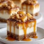 Caramel Apple Cheesecake Bars combine the best flavors of fall into a delicious, handheld treat. With a crunchy graham cracker crust, creamy cheesecake layer, cinnamon-spiced apples, and a buttery streusel topping, these bars are perfect for dessert or a special snack.