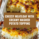 This comforting Meatloaf with Mashed Potatoes and Cheese recipe features a flavorful ground beef base topped with creamy mashed potatoes and melted cheddar cheese, baked to perfection. It’s an easy-to-make, hearty dish that’s perfect for family dinners or meal prep.