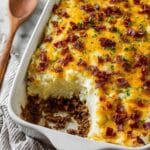 This comforting meatloaf with mashed potatoes and cheese is a hearty, satisfying meal perfect for family dinners. Layers of seasoned ground beef, creamy mashed potatoes, and melted cheddar make it a crowd-pleaser that’s easy to prepare.