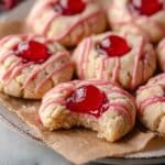 These Cherry Almond Shortbread Cookies are tender, buttery treats with a delightful almond aroma and bursts of sweet maraschino cherries. Perfect for teatime or a festive snack, they combine simple ingredients into an elegant homemade cookie.