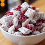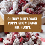 Keywords: Cherry Cheesecake Puppy Chow, Chex Mix Dessert, White Chocolate Snack, Sweet Treat, No-Bake Snack