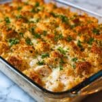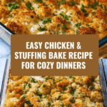This comforting Chicken & Stuffing Bake recipe features tender chicken breasts topped with creamy sauce and savory stuffing, baked to golden perfection. Easy to prepare and perfect for a hearty family meal, it combines classic flavors with simple ingredients for a satisfying dinner.