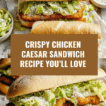 This Chicken Caesar Sandwich recipe features crispy fried chicken cutlets, a flavorful garlic butter toasted bread, and a creamy Caesar dressing tossed with fresh romaine lettuce. Perfectly layered in hoagie rolls or baguettes, these sandwiches combine classic Caesar salad elements with a hearty, crunchy chicken base to create a satisfying and delicious meal.