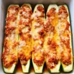 Store leftover zucchini boats in an airtight container in the refrigerator for up to 3 days. Reheat in the oven or microwave until warmed through. For best texture, reheat in the oven at 350°F (175°C) to maintain the crispness of the cheese topping.