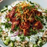 Chicken Shawarma Crispy Rice Salad is a vibrant and satisfying dish that combines tender spiced chicken with crunchy rice and fresh vegetables. This flavorful salad is perfect for a quick lunch or a light dinner, offering a delicious mix of textures and bold Middle Eastern-inspired flavors.