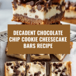 Delightful Chocolate Chip Cookie Cheesecake Bars featuring a rich cream cheese layer sandwiched between layers of buttery chocolate chip cookie dough. These bars combine the best of classic cookies and creamy cheesecake in one perfect dessert, baked to golden perfection.