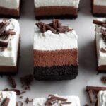 - Top the Bars: Spread the whipped cream topping evenly over the chilled filling using an offset spatula or spoon. Optionally, garnish with chocolate shavings or curls for an elegant finish.