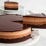 - Finish Cake: Pour the ganache over the mousse layer and spread evenly with a spatula. Chill the entire cake for at least 2 more hours to let the ganache firm up.