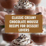 This classic creamy chocolate mousse is a luscious dessert that combines rich dark chocolate with airy whipped cream for a perfect balance of flavors and textures. It’s simple enough for home cooks yet elegant enough to impress guests.