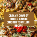 Cowboy Butter Garlic Chicken Tortellini is a rich and flavorful dish that combines tender chicken with creamy sauce and cheesy tortellini. The smoky spices and garlic butter sauce add a delicious kick, making this a satisfying meal perfect for any night of the week.