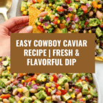 Keywords: Cowboy caviar, black bean salad, Tex-Mex salad, no cook salad, bean dip, healthy appetizer, vegan salad, party dip