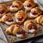 Delightfully bite-sized cranberry cream cheese crescent rolls that combine a flaky, buttery crescent dough with a sweet cream cheese filling and tangy cranberry sauce. These easy-to-make mini treats are perfect for holiday parties, brunches, or anytime you want a delicious, festive snack.