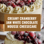 This Cranberry Jam White Chocolate Mousse Cheesecake is a delightful blend of tart cranberries and sweet white chocolate, layered over a buttery graham cracker crust. Perfect for the holidays or any special occasion, it combines creamy textures and vibrant flavors in every bite.