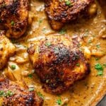 6. Reintroduce Chicken: Return the browned chicken thighs to the skillet and cook for an additional minute, allowing the flavors to meld and chicken to heat through.