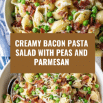 - Step 4: In a large bowl, combine the pasta, peas, bacon, and parmesan. Pour the dressing over the top and gently toss until everything is evenly coated.