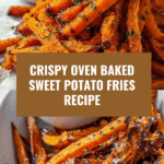 Crispy Oven Baked Sweet Potato Fries are a healthier alternative to traditional fried fries, seasoned with garlic powder, paprika, and a hint of black pepper. These fries are soaked in water to remove excess starch, tossed with olive oil and spices, then baked to golden perfection for a crunchy and flavorful snack or side dish.