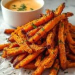 Store leftover sweet potato fries in an airtight container in the refrigerator for up to 3 days. To reheat and maintain some crispiness, spread them on a baking sheet and bake at 400°F (200°C) for 5-10 minutes. Avoid microwaving to prevent sogginess.