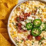 This Crockpot Jalapeno Corn Dip is a creamy, cheesy appetizer packed with sweet corn, spicy jalapenos, and smoky bacon. Slow-cooked to perfection, it blends melty cream cheese with sharp Colby Jack cheese and zesty Tajin seasoning for a flavorful dip that’s perfect for parties and casual gatherings. Serve it warm with crunchy tortilla chips or Fritos for a crowd-pleasing snack that’s easy to prepare.
