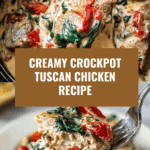 This Crockpot Tuscan Chicken recipe is a creamy, flavorful dish perfect for a comforting weeknight dinner. Tender chicken thighs simmer in a rich sauce with garlic, sun-dried tomatoes, and spinach, making it both simple and satisfying.