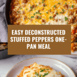 Deconstructed Stuffed Peppers offer all the comforting flavors of classic stuffed peppers without the hassle of stuffing each pepper. This one-pan dish combines savory ground beef, tender rice, and sweet bell peppers topped with melted mozzarella for a hearty, satisfying meal.