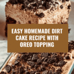 This Dirt Cake recipe transforms a simple chocolate cake into a fun and decadent dessert layered with hot fudge, rich chocolate pudding, and topped with a creamy Cool Whip and crushed Oreos. A treat that combines moist cake soaked with fudge, silky pudding layers, and crunchy cookie toppings for an irresistible dirt-inspired delight.