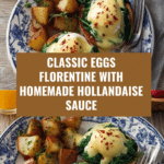 Eggs Florentine is a classic breakfast dish that combines perfectly poached eggs, sautéed spinach, and a rich hollandaise sauce served atop toasted English muffins. It’s a flavorful and elegant way to start your day or impress guests at brunch.