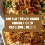 This French Onion Chicken Orzo Casserole combines rich caramelized onions with tender chicken and creamy orzo pasta for a comforting, flavorful meal. It’s a perfect weeknight dinner that feels both elegant and satisfying.
