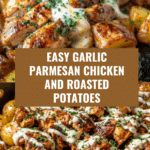 A delicious and easy-to-make Garlic Parmesan Chicken and Potatoes recipe featuring tender, seasoned chicken breasts roasted alongside crispy, flavorful baby potatoes coated in garlic, Parmesan, and herbs. Perfect for a comforting weeknight dinner.