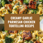 A creamy and flavorful Garlic Parmesan Chicken Tortellini recipe featuring tender chicken, cheesy tortellini, and crisp broccoli tossed in a rich garlic Parmesan sauce. This easy skillet dish combines sautéed chicken and garlic with a luscious cream sauce for a comforting weeknight meal.