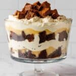 This Gingerbread Trifle is a festive and delicious layered dessert featuring moist gingerbread cake combined with creamy pumpkin spice pudding and rich white chocolate pudding, topped with whipped topping for a perfect holiday treat.