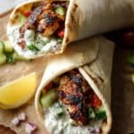 Keywords: Greek chicken gyros, tzatziki, grilled chicken, Mediterranean recipe, pita wrap, chicken shawarma