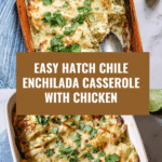 A flavorful and creamy Hatch Chile Enchilada Casserole featuring roasted Hatch green chiles, tender chicken, and a spicy cashew queso sauce, baked to perfection for a comforting and satisfying meal with a hint of southwestern flair.