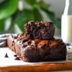 Deliciously fudgy and healthy banana brownies made with ripe bananas, unsweetened cocoa powder, peanut butter, and dairy-free dark chocolate chips. These brownies are dairy-free, naturally sweetened by bananas, and perfect for a guilt-free treat or snack.