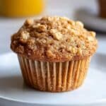 7. Prepare Topping: In another bowl, mix together the oats, cinnamon, brown sugar, and melted butter until well combined. Sprinkle this oat topping evenly over each muffin.