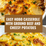 Hobo Casserole Ground Beef is a comforting and hearty one-dish meal that layers savory browned ground beef with tender sliced potatoes and a rich blend of cheddar and Parmesan cheeses. Baked to golden perfection with Italian seasoning and a touch of paprika, this casserole is easy to prepare and perfect for a family dinner or potluck.
