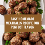 This Homemade Meatballs recipe offers a delicious and simple way to prepare tender, flavorful meatballs using ground beef, onions, and Parmesan cheese. Perfect for serving as an appetizer, in pasta dishes, or on their own, these meatballs can be cooked either on the stovetop or in the oven to achieve a perfectly browned and juicy result.