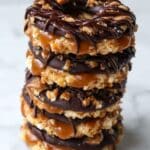 Homemade Samoas Cookies are a delightful treat inspired by the popular Girl Scout cookies, featuring buttery shortbread rings topped with toasted sweetened coconut coated in caramel, and finished with dark chocolate drizzles. This recipe provides a step-by-step guide to creating these irresistible cookies from scratch, perfect for sharing or enjoying with a cup of tea.