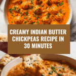 This Indian Butter Chickpeas recipe is a flavorful and creamy vegetarian curry made with tender chickpeas simmered in a spiced tomato-based sauce enriched with butter and cream. It’s a comforting dish perfect for a wholesome meal, garnished with fresh cilantro and a splash of lemon juice for brightness.